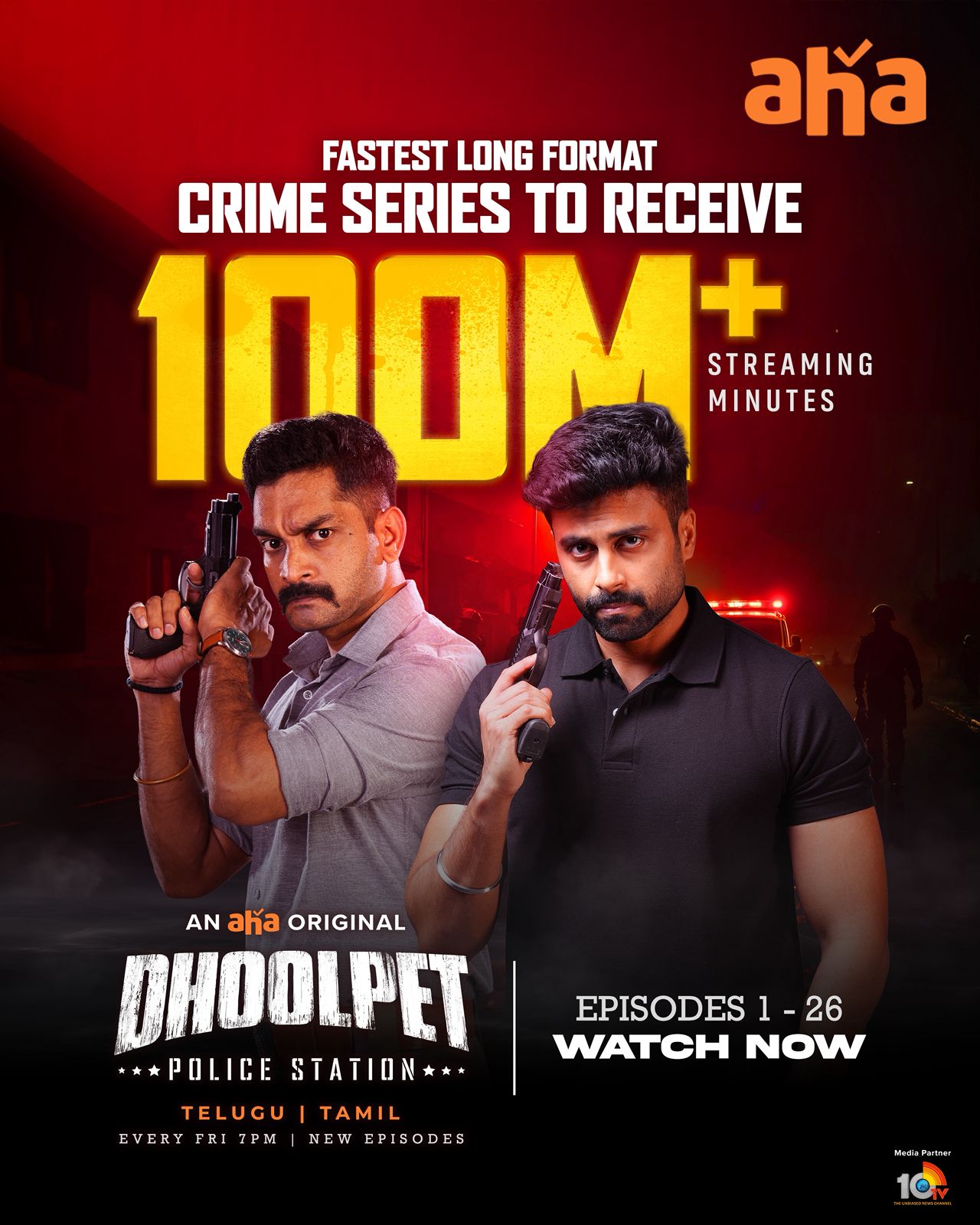 సరికొత్త కంటెంట్ తో ఆడియెన్స్ ను థ్రిల్ చేస్తున్న ఆహా ఓటీటీ అందించిన మరో ఎగ్జైటింగ్ క్రైమ్ థ్రిల్లర్ వెబ్ సిరీస్ ‘ధూల్ పేట్ పోలీస్ స్టేషన్’. 50 ఎపిసోడ్స్ ఉన్న ఈ సిరీస్ 100 మిలియన్ మినిట్స్ ఫ్లస్ వ్యూస్ తో సూపర్బ్ రెస్పాన్స్ దక్కించుకుంటోంది. తెలుగుతో పాటు తమిళ భాషల్లో ‘ధూల్ పేట్ పోలీస్ స్టేషన్’ సిరీస్ ప్రేక్షకులను ఆకట్టుకుంటోంది. ఈ వెబ్ సిరీస్కు జెస్విని దర్శకత్వం వహించారు. అశ్విన్, శ్రీతు, పదిని కుమార్, గురు, ప్రీతి శర్మ తదితరులు కీలక పాత్రలు పోషించారు.
