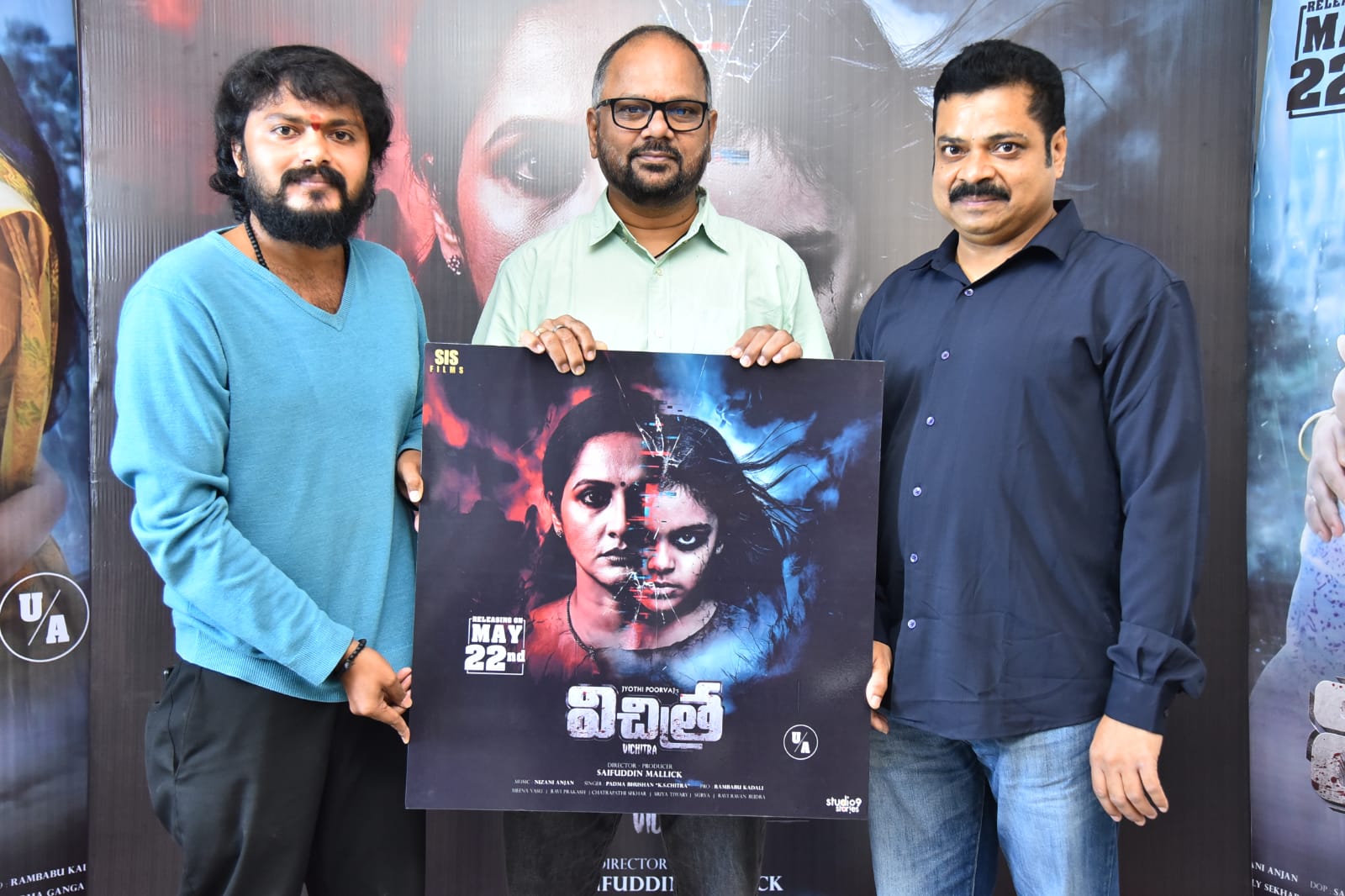 ఈ సందర్బంగా దర్శకుడు మరియు నిర్మాత సైఫైద్దీన్ మాలిక్ మాట్లాడుతూ … ఈ కార్యక్రమానికి విచ్చేసిన మీడియా మిత్రులందరికీ నమస్కారం, ముందుగా దర్శకుల సంఘం ఎన్నికల్లో అత్యధిక మెజారిటీ గెలుపొందిన వి.ఎన్ ఆదిత్య గారికి ముందుగా హృదయ పూర్వక అభినందనలు తెలిపారు, పోస్టర్ రిలీజ్ కు విచ్చేసిన దర్శకులు వి.ఎన్ ఆదిత్య గారికి ప్రత్యేక ధన్యవాదాలు, మా విచిత్ర సినీమా చాలా బాగా వచ్చింది. వచ్చే నెల ప్రేక్షకుల ముందుకు వస్తుంది. మీ అందరి సపోర్ట్ కావాలని కోరారు.